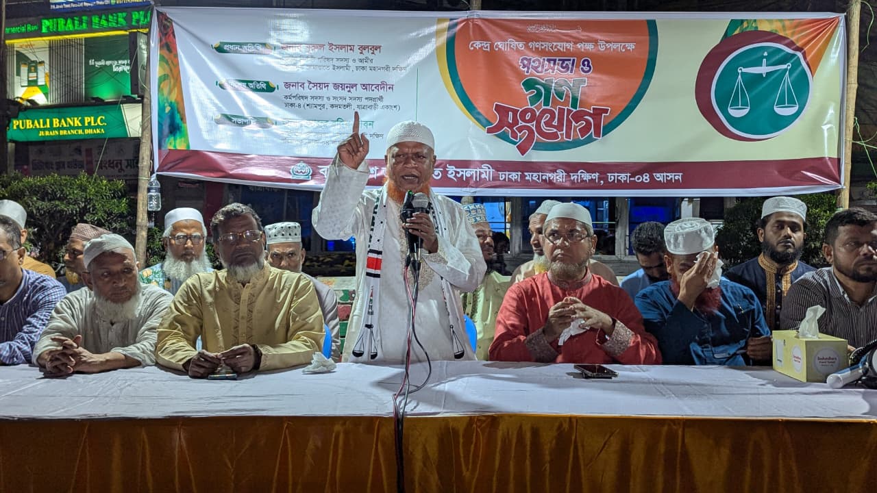 ঢাকা-৪ আসনের উদ্যোগে বুধবার (২৪ সেপ্টেম্বর) রাতে বাংলাদেশ জামায়াতে ইসলামীর কেন্দ্র ঘোষিত গণসংযোগ পক্ষের দাওয়াতী অভিযান পরিচালিত হয়েছে। মহানগরীর মজলিসে শূরা সদস্য ও ঢাকা-৪ আসন পরিচালক আব্দুর রহিম জীবনের সভাপতিত্বে গণসংযোগ পক্ষের দাওয়াতী অভিযান পূর্বক পথসভায় প্রধান অতিথির বক্তব্য রাখেন বাংলাদেশ জামায়াতে ইসলামীর কেন্দ্রীয় নির্বাহী পরিষদ সদস্য ও ঢাকা মহানগরী দক্ষিণের আমীর জননেতা মো. নূরুল ইসলাম বুলবুল। অনুষ্ঠানে বিশেষ অতিথি ছিলেন মহানগরীর কর্মপরিষদ সদস্য, ঢাকা-৪ আসনে জামায়াত মনোনীত সংসদ সদস্য পদপ্রার্থী সৈয়দ জয়নুল আবেদীন।