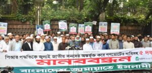 ৫ দফা দাবিতে রাজধানীর যাত্রাবাড়ী থেকে গাবতলী (আমিনবাজার) পর্যন্ত ২০ কিলোমিটার সড়ক জুড়ে জামায়াতে ইসলামীর মানববন্ধন