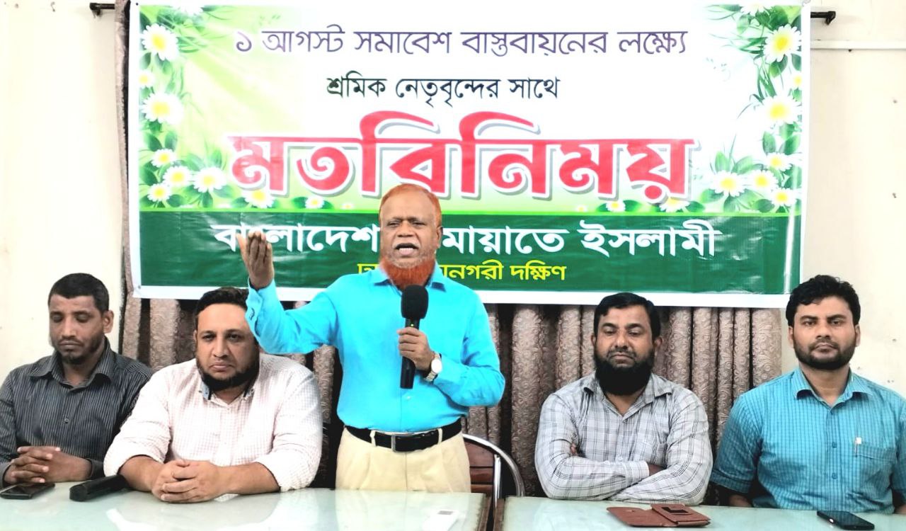 তিনি বৃহস্পতিবার সন্ধ্যায় রাজধানীর এক মিলনায়তনে বাংলাদেশ জামায়াতে ইসলামী ঢাকা মহানগরীর শ্রম বিভাগের উদ্যোগে শ্রমিক নেতৃবৃন্দের সাথে এক মতবিনিময় সভায় প্রধান অতিথির বক্তব্যে এ কথা বলেন। মহানগরী শ্রম সম্পাদক মুহাম্মদ আবদুস সালামের সভাপতিত্বে অনুষ্ঠিত মতবিনিময় সভায় অন্যান্যের মধ্যে বক্তব্য রাখেন শ্রমিক নেতা মুহাম্মদ হাফিজুর রহমান, সোহেল রানা মিঠু, মাহবুবুর রহমান প্রমূখ।